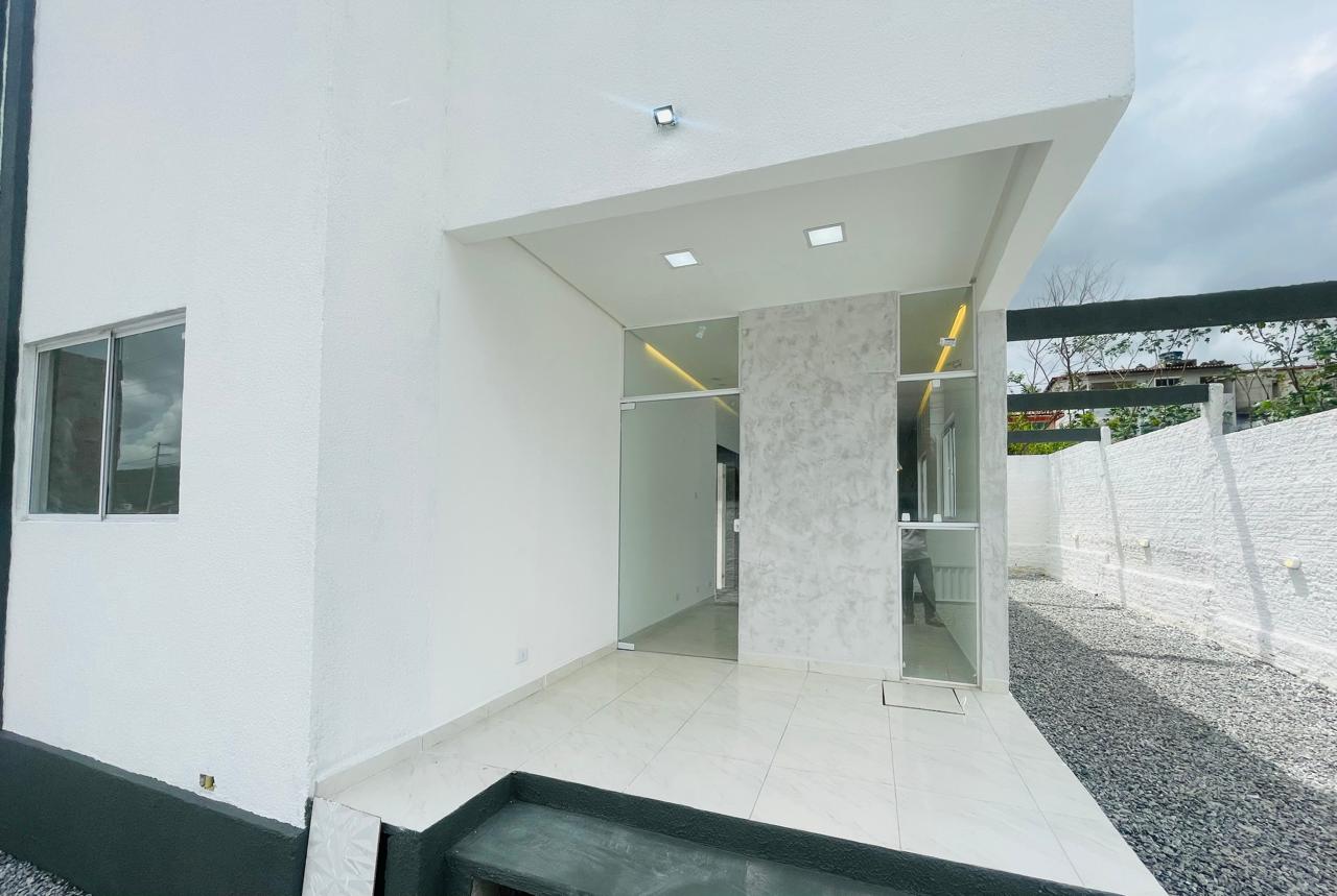 Vendo casa nova, recém construída no bairro Cruzeiro no Condominio Serra da Estrela, com 80 metros quadrados com: Frente recuada, Portão eletrônico, 3 quartos sendo 1 suíte, 1 banheiro social, Sala de estar, Sala de jantar, Cozinha tipo Americana, Àrea de serviço, oitão livre. Terreno medindo 10 metros de frente por 20 metros de fundos com área total de 200m². Cisterna para 7.000 L, Caixa de água com 1000 L, motor bomba d´água, Garagem para 7 carros.